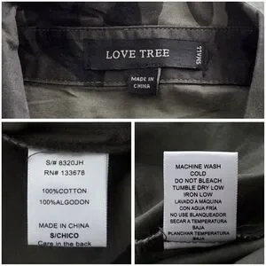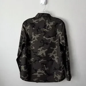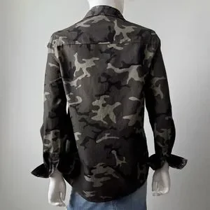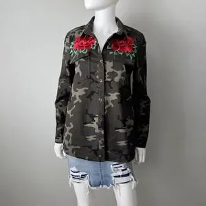 Love Tree 100% cotton dark camoflage shirt with collar & buttons. Chest pockets, cool red rose details. Size small, flat measurements in photos. Super unique & different. In excellent condition, like new.
