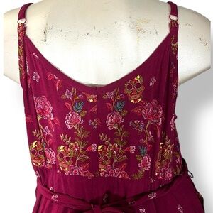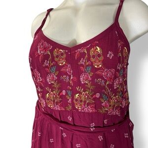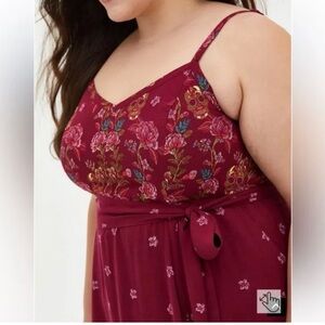TORRID Maroon Red Sugar Skull Floral Print Belted Tank Midi Dress 3 3X