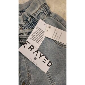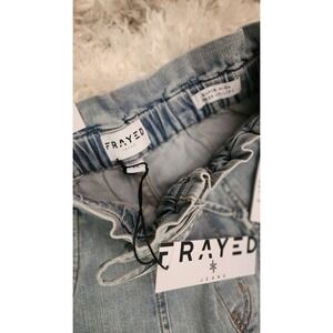 The FRAYED Women's Light Blue Acid Wash Utility Jeans are a stylish and versatile addition to any woman's wardrobe. These distressed jeans feature a frayed hem and a tie waist closure, giving them a trendy and unique look. Made from denim fabric, these high-rise, relaxed fit jeans are perfect for the summer, fall, or spring seasons. The utility pockets and elastic waistband add practicality to the 90s-inspired design, making these jeans both fashionable and functional for everyday wear.
