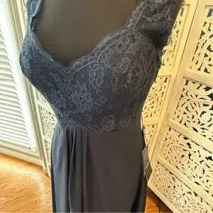 NWT Izidress Navy Lace-Detail Maxi Dress with Scoop Neck Sz M