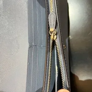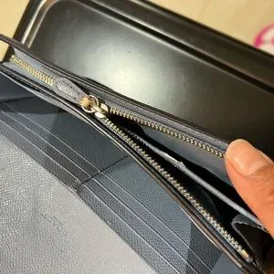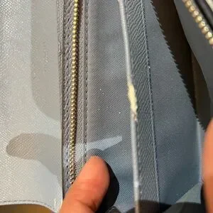 coated canvas and blue leather zippered top