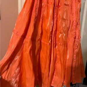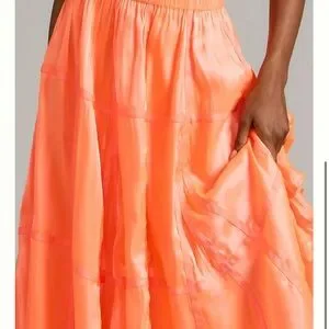 Anthropologie Satin parachute Tiered Maxi Skirt in Bright Coral