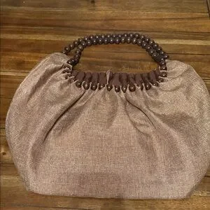 Chic Tan Beaded Handle Women's Shoulder Bag