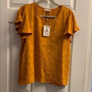 Easel Golden Ruffle Sleeve Blouse Medium NWT