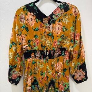 Mustard /gold, green, rust, multicolor floral
