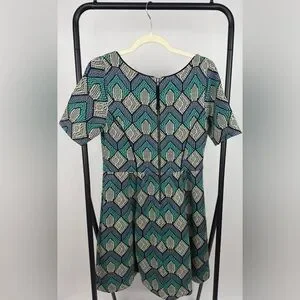 Classic Anthropologie styling with a modern geometric print makes this a versatile piece that pairs easily with boots, flats, or heels.