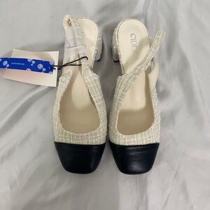 Cider Coquette Cream White Black Color Block Mary Jane Sling Back Heels 7.5