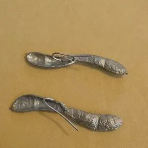 Pea Pod Earrings from the Michael Michaud Jewelry collection which is known for its botanical realism. This collection is handcrafted using a process similar to lost-wax casting, where molds are often created directly from actual plants.