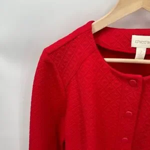 CHICO'S Red Quitled Textured Snap Closure Knit Jacket Blazer // L