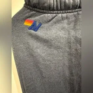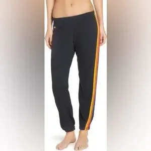 Aviator Nation Navy Track Pants with Yellow & Orange Side Stripe