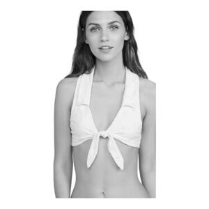 Equally as cute in the water as it is while you’re enjoying a poolside pina colada. Deep V neck with a tie front. Lined.
