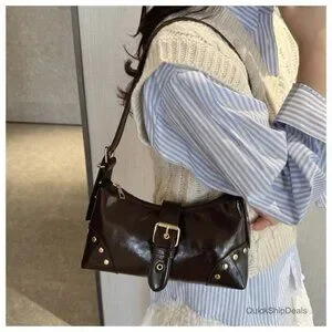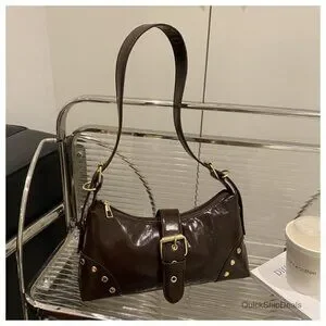 ✨ Y2K Shoulder Bag with Vintage Buckle & Studded Detail
