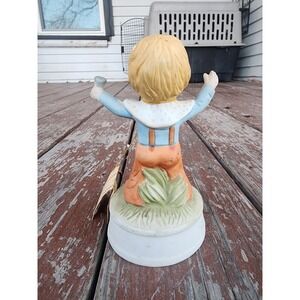 Vintage Porcelain 1970s Little Boy & Dog Music Box W/ Tag, Tested