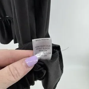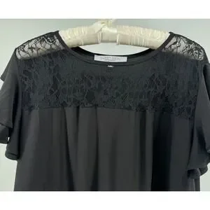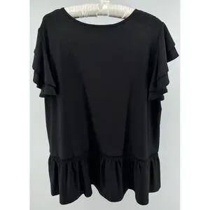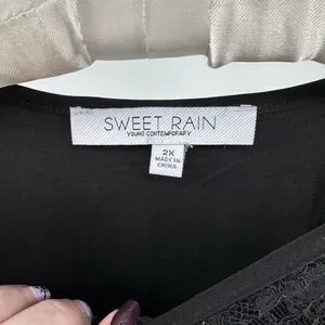 Sweet Rain Black Lace Yoke Blouse Womens Plus Size 2X Ruffle Hem Top