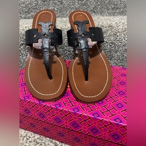 NEW Tory Burch Moore Black Leather Heeled Sandals