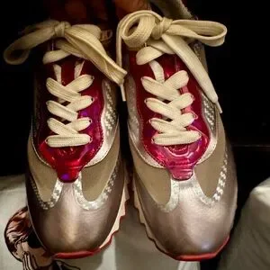 Elevate your style with these chic women's sneakers. Featuring a striking silver and red design, these shoes are perfect for making a statement. Comfortable and trendy, they're a must-have addition to your wardrobe.