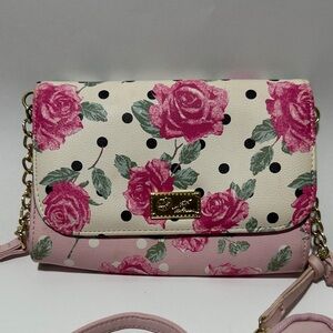 Luv Betsey by Betsey Johnson Rose Print Pink Crossbody Bag - Chain Strap & Pouch
