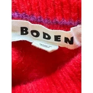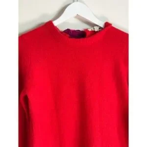 Boden Red Fluffy Bow Back Jumper Sweater Velvet Tie Women's Size XS