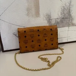 This crossbody wallet — fitted with lush compartments for your cash and cards — is secured by MCM's engraved Laurel Lock closure. For handsfree wear, simply attach the chain strap and tuck it inside for later use.