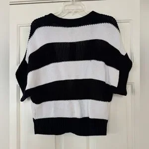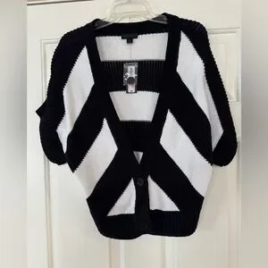 Worthington Black and White Striped Short-Sleeve Cardigan XL NEW