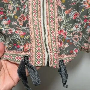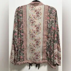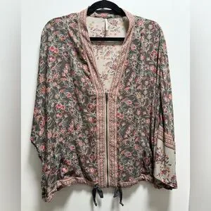 Free People Winlflowers Printed Cinched Kimono Zip Up Jacket Art XS/S Oversized