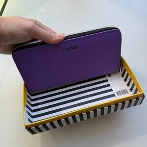 NEW Marc Tetro white bichon frise dog purple zip-around wallet. Adorable and collectible. Crafted in durable coated faux leather with signature black trim and silver zipper. Comes in the original Marc Tetro gift box with matching artwork. Brand new with box.