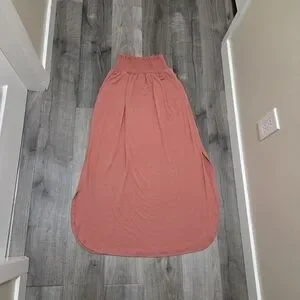 Zenana Coral Smocked Waist Maxi Skirt Stretchy Side Slit Lounge Resort Skirt