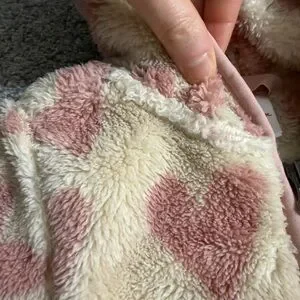 Color is beige base with pink heart print pattern all over design
