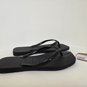NWT-Havaianas Women's Slim Square Toe Flip Flops in Black-Size 6