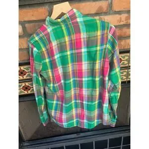 Ralph Lauren Tomboy Preppy Plaid Button Up Lite Flannel 10 Pink Green