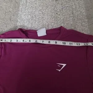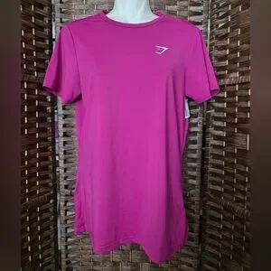 Gymshark short sleeve tee with crew neckline. Small logo tag at collar. Soft performance fabric in a bold magenta shade. more detail in pic