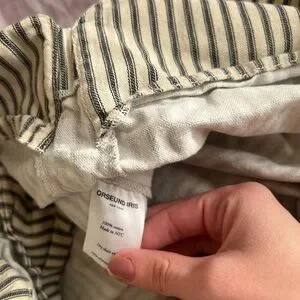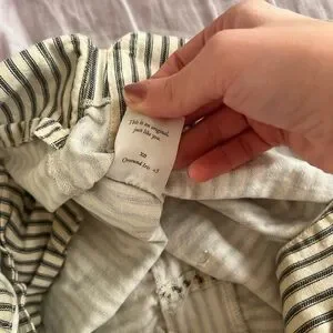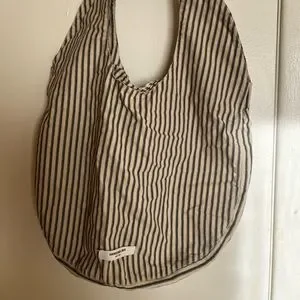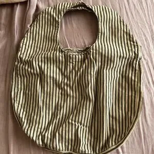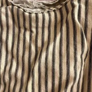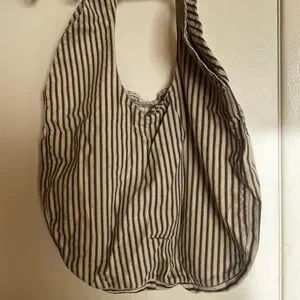 Stylish tote with black and tan stripes. Perfect for everyday use. Adds a chic touch to any outfit. Really beautiful tote , I did wore it a few times and it does have a 2 little stains , pictured it. Overall a really beautiful tote for any casual outfit 🥰