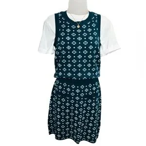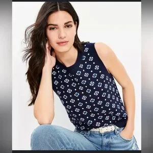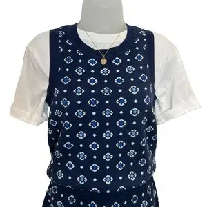 LOFT Navy and White Jacquard Floral sweater tank and mini skirt