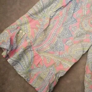 Color: Pink multicolor pastel paisley print with blue and green accents