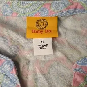 Labels: Ruby Rd. main neck label; interior size tag marked XL; style 31540 C8; RN 107680; Made in China; fabric content and multilingual care labels at side seam