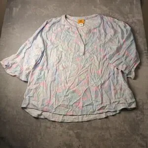 Keywords: Ruby Rd womens XL blouse, pink paisley henley tunic top, lightweight 3/4 sleeve rayon