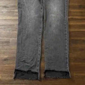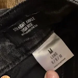 Express washed faded black straight ankle high rise ultra hyper stretch jeans. Raw stepped hem leg openings. Stretch denim. Size medium 6/8/10 long. Good used conditions, no holes or stains.