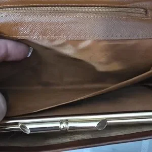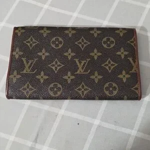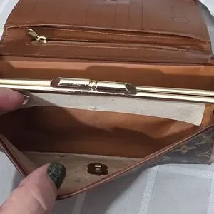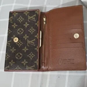 Elegant Vintage Louis Vuitton wallet with iconic monogram design. Features brown and gold tones.