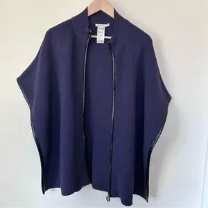 Chico's Navy Knit Open-Front Poncho with Black Trim