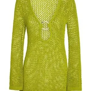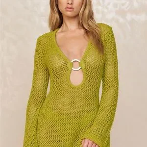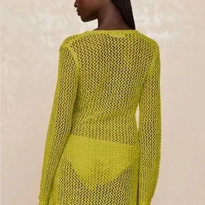 Chic lime knit mini dress. Perfect for beach outings. Stylish and elegant.