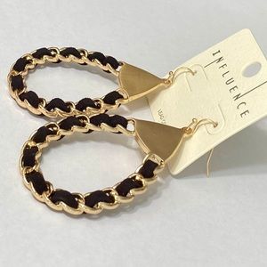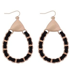 CHANEL LINK CHAIN DROP HOOP EARRINGS - GOLD & BLACK LEATHER
