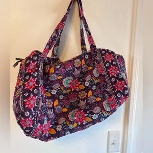 Stylish and vibrant women's bag featuring a colorful floral pattern. Perfect for adding a pop of color to any outfit or weekend getaway. This is not Vera Bradley brand but a look a like. Pockets on outside but not inside.