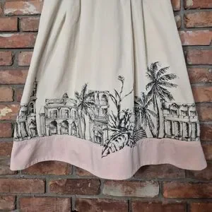 Tristan & Iseut Artistic Border Print Dress Size 14 (Fits 10-12) Lined Romantic
