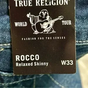True Religion Sz 33 34 Dark Blue Jeans Rocco Relaxed Slim NWT
