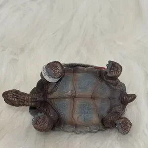Realistic brown tortoise figurine by . Detailed sculpting and textured shell for lifelike appearance. Durable collectible for play or display. Brown finish complements small-pet collections.