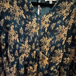 Hayden | Antique Floral Smocked Panel V Neck Dress | Medium