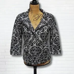 Talbots Black & White Jacquard Blazer | Size 4 | Elegant Damask Statement Piece