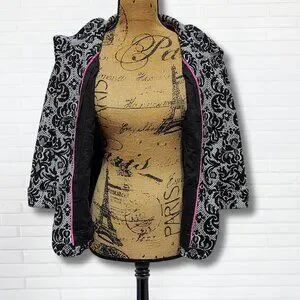 You’ll feel instantly put-together the moment you slip this on. The jacquard weave catches the light in all the right ways — rich black and soft ivory swirling together in a timeless damask pattern. It’s that rare piece that looks just as polished with jeans as it does over a dress.