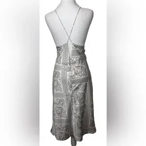 Paisley Bandana Print Strappy Back Slip Midi Sundress Coastal Summer Resort Lg