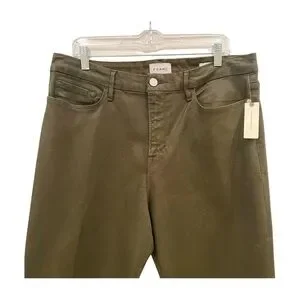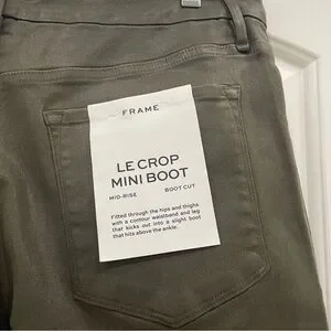 NWT Anthropologie Frame Green Le Crop Mini Boot Mid Rise Coated Denim Jeans 34